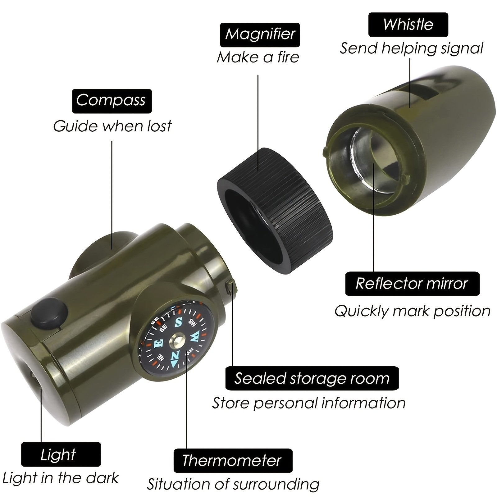 ABS 7 In 1 Multifunctional Survival Whistle With LED Light; Compass; Thermometer; Magnifying Glass; Mirror; Suitable For Camping; Hiking; Outdoor Esse ABS 7 In 1 Multifunctional Survival Whistle With LED Light; Compass; Thermometer; Magnifying Glass; Mirror; Suitable For Camping; Hiking; Outdoor Esse ABS 7 In 1 Multifunctional Survival Whistle With LED Light; Compass; Thermometer; Magnifying Glass; Mirror; Suitable For Camping; Hiking; Outdoor Esse ABS 7 In 1 Multifunctional Survival Whistle With LED Light; Compass; Thermometer; Magnifying Glass; Mirror; Suitable For Camping; Hiking; Outdoor Esse ABS 7 In 1 Multifunctional Survival Whistle With LED Light; Compass; Thermometer; Magnifying Glass; Mirror; Suitable For Camping; Hiking; Outdoor Esse ABS 7 In 1 Multifunctional Survival Whistle With LED Light; Compass; Thermometer; Magnifying Glass; Mirror; Suitable For Camping; Hiking; Outdoor Esse