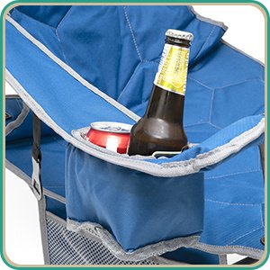 Super Handy: COOLER BAG & CUP HOLDER Keep your beverages cool in this built-in cooler bag(3 cans of cokes capacity). A convenient cup holder is built in to the left arm. The fabric is made from a durable outdoor-quality 600D oxford polyester.Built to Last: The sturdy steel frame construction affords up to 300 LBS (136KG) weight capacity and the chair weights 8.8 LBS (4KG). The double-seam 600x300D Oxford Cloth with 140g Foam Padding has great strength, durability, and breathability. You don't have to worry for the heavy-duty use, either to buy a new one in the near future.