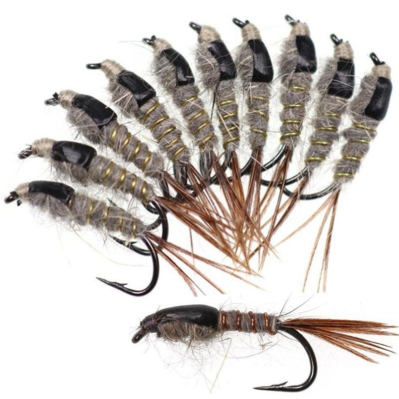 Home > 5-30Pcs Black Back Rabbit Ear Wire Nymph Flies Trout Fly Fishing Lures 10# For Freshwater Saltwater
